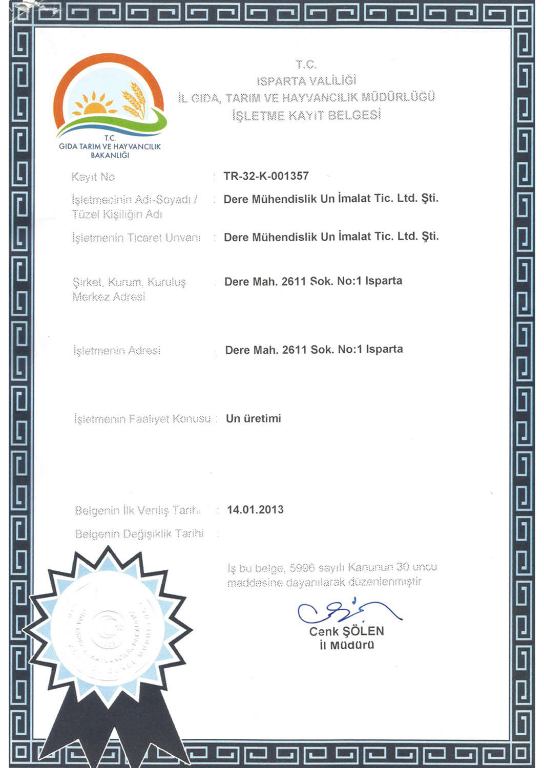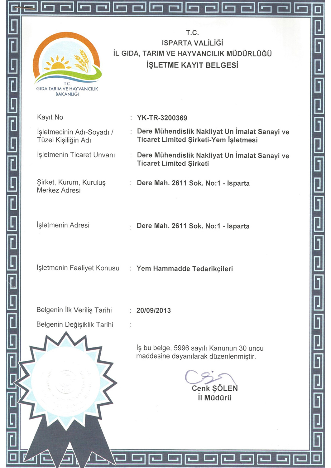 Dere Mah. 2611 Sok. No:1 ISPARTA Eşeler Mah. Rüzgar Sok. No:1 Karamanlı / Burdur